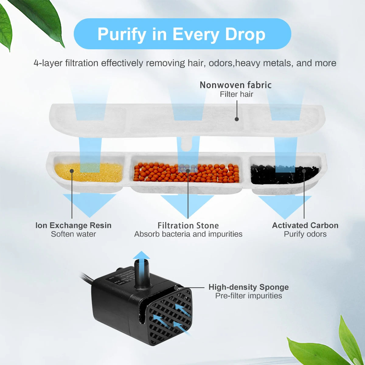 Maintaining a safe, fresh water source for your cat is one of the most overlooked aspects of feline care. While many pet owners focus on the fountain itself, the true impact on water quality comes from the filter system. These premium replacement filters go far beyond basic filtration, offering a deeper, more refined purification experience that many standard filters simply don’t address. Designed specially for 84oz/2.5L cat water fountains, this set is engineered to support better hydration, improved wellbeing, and long-term fountain performance — all while giving you exceptional value and free shipping.
