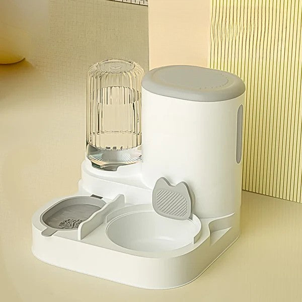 Combines a food bowl and an automatic water dispenser to simplify daily feeding routines. -